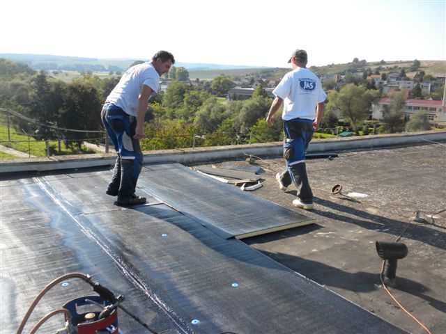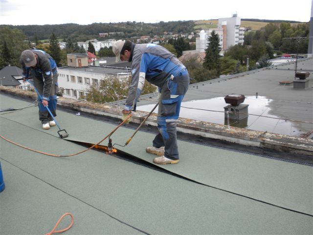 Bytový dom-montáž hydrothermo izolácie a vrchného bezúdržbového SBS pásu (zateplenie strechy)