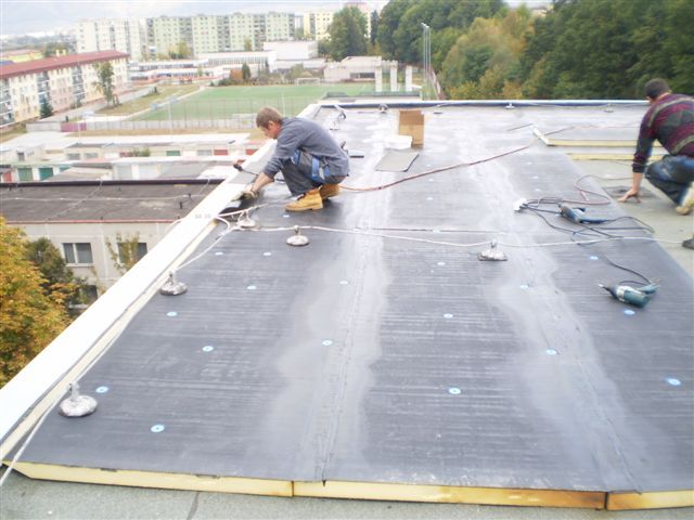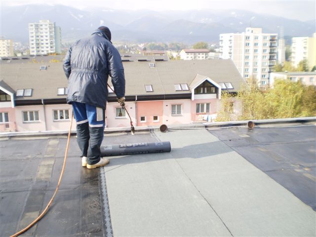 Bytový dom-montáž hydrothermo izolácie a vrchného bezúdržbového SBS pásu (zateplenie strechy)