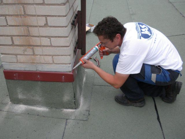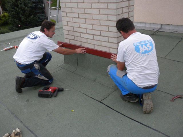 montáž vrchného bezudržbového SBS pásu obvodom komína