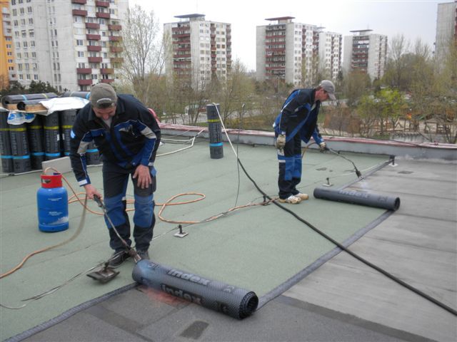 Obchodný dom REAL MARKET-montáž vrchného bezúdržbového SBS pásu
