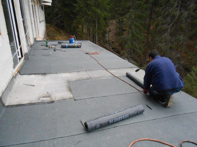 montáž vrchného bezudržbového SBS pásu, montáž hliníkových parapiet
