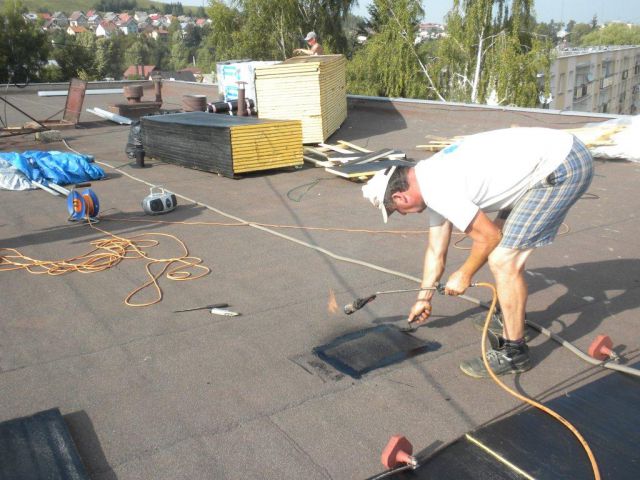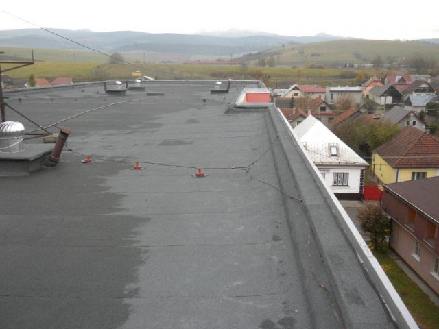 Bytový dom-montáž hydrothermo izolácie a vrchného bezúdržbového SBS pásu (zateplenie strechy)