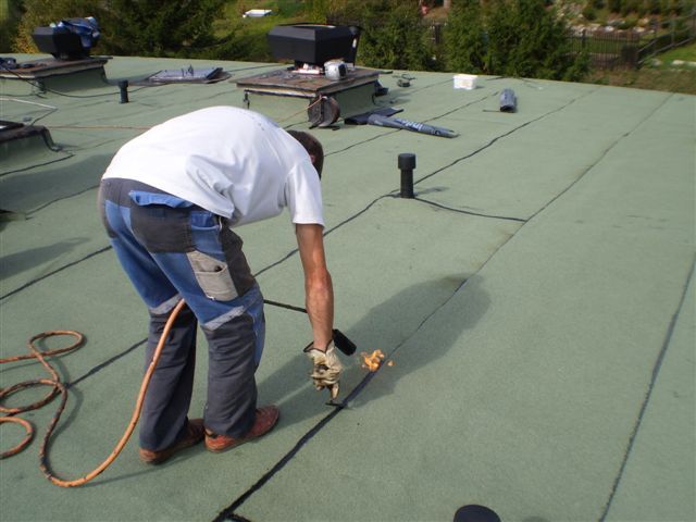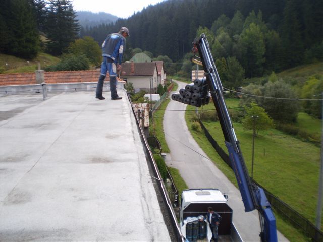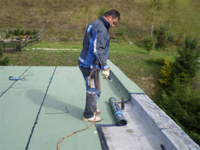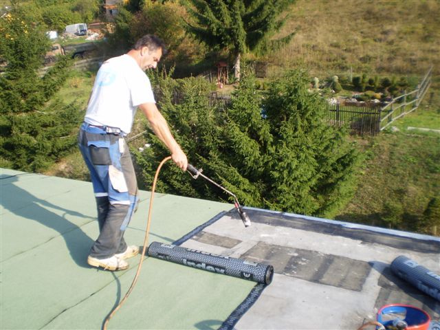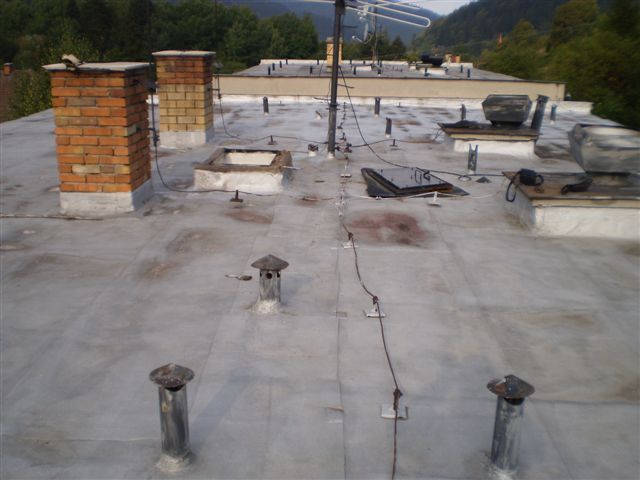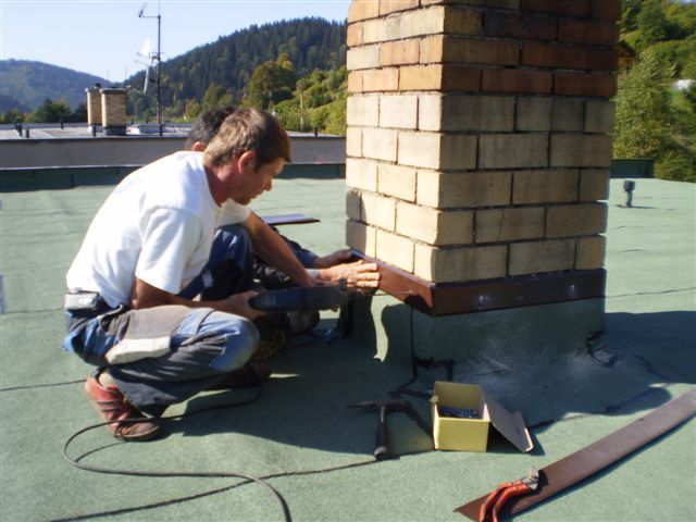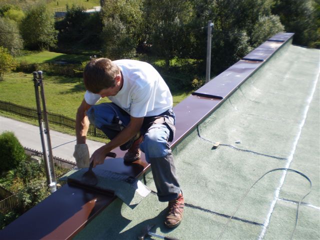 Bytový dom-montáž vrchného SBS pásu, výmena atiky a odvodňovacieho systému
