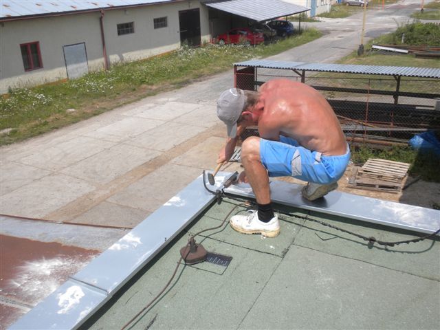montáž ukončenia SBS pásu na stenu budovy olištovaním