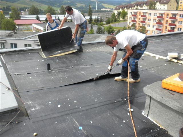 Bytový dom-montáž hydrothermo izolácie a vrchného bezúdržbového SBS pásu (zateplenie strechy)