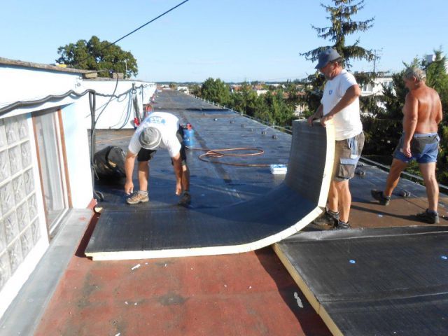 Bytový dom-montáž hydrothermo izolácie a vrchného bezúdržbového SBS pásu (zateplenie strechy)