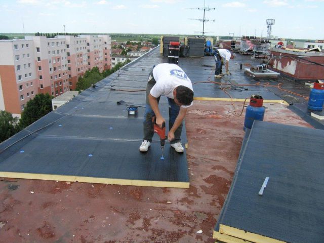 Bytový dom-montáž hydrothermo izolácie a vrchného bezudržbového SBS pásu (zateplenie strechy)